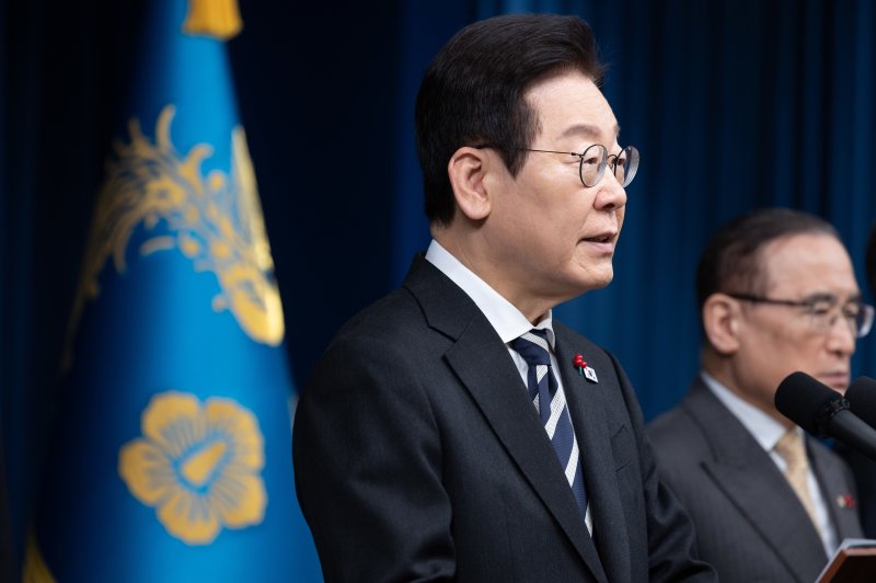 이재명 대통령이 3일 서울 용산 대통령실 청사에서 ‘빛의 혁명 1주년, 대통령 대국민 특별성명’을 발표하고 있다. 2025.12.3/뉴스1 ⓒ News1 이재명 기자