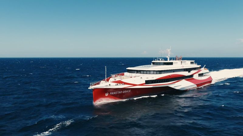 호주 오스탈사가 2020년에 건조한 세계 최초의 80m급 트라이마란(삼동선) 타입의 고속선으로 뛰어난 안정성과 여유로운 실내공간, 다양한 편의시설을 갖췄다.