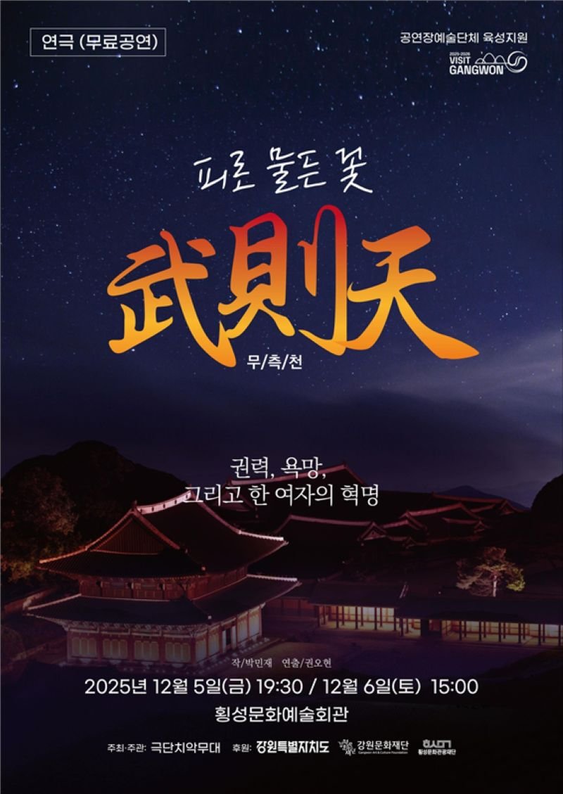 [횡성=뉴시스]이덕화 기자 = 횡성문화관광재단은 극단 치악무대와 신작 연극 '무측천-피로 물든 꽃'을 5~6일 이틀간 선보인다고 3일 밝혔다.
