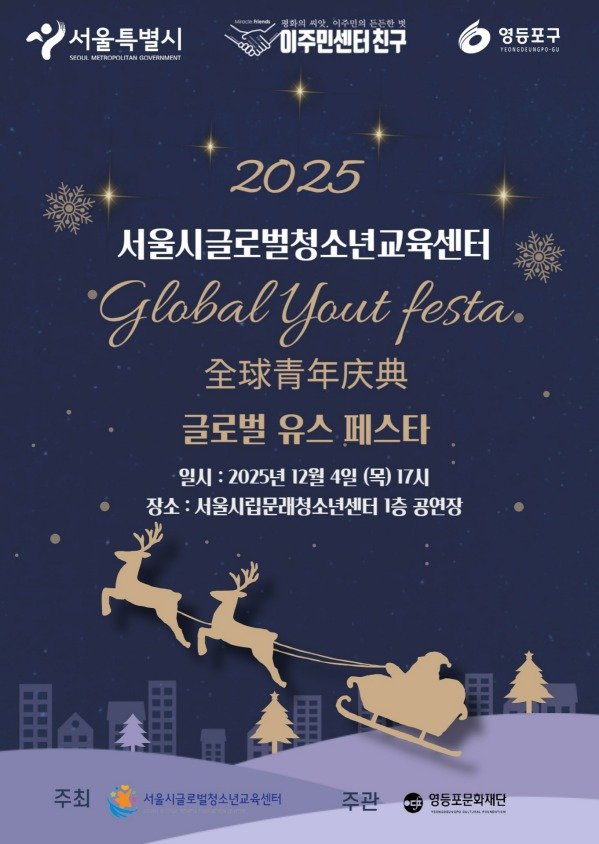(서울=뉴스1) 구진욱 기자 = 서울시는 4일 오후 5시 서울시립문래청소년센터에서 중도입국 청소년 송년 발표회 '글로벌 유스 페스타(Global Youth Festa)'를 개최한다고 3일 밝혔다.