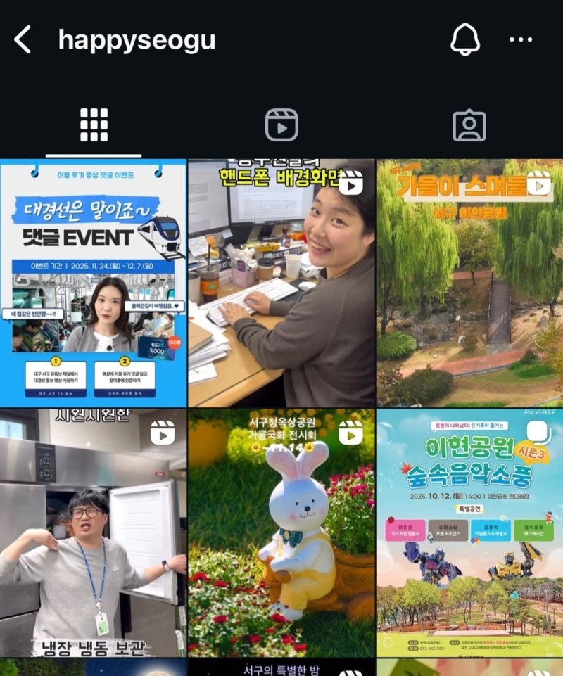(대구=뉴스1) 이성덕 기자 = 대구 서구는 3일 자체 제작한 인스타그램 릴스 콘텐츠 '공무원 배경 화면 뭐예요'가 공개 10일 만에 조회 수 100만회를 넘겼다고 밝혔다.