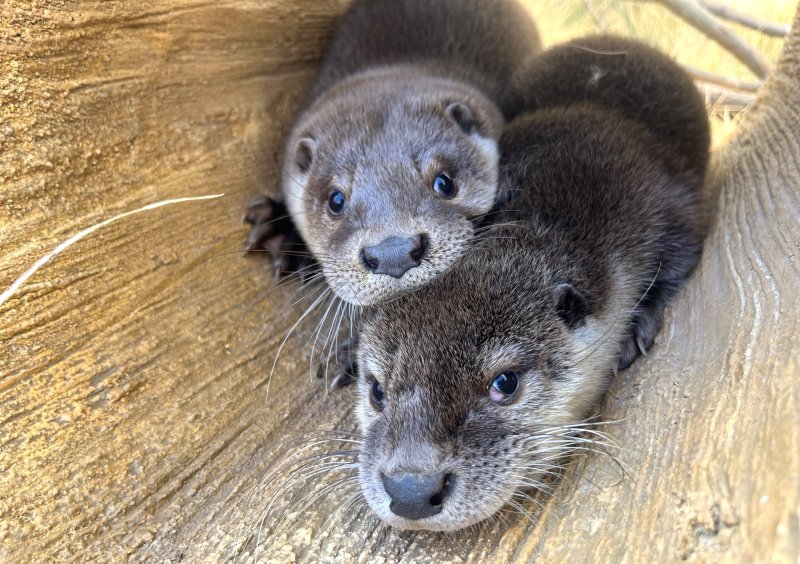 수달 두 마리는 전문 사육사의 보호를 받으면서 관람객들을 맞고 있다.