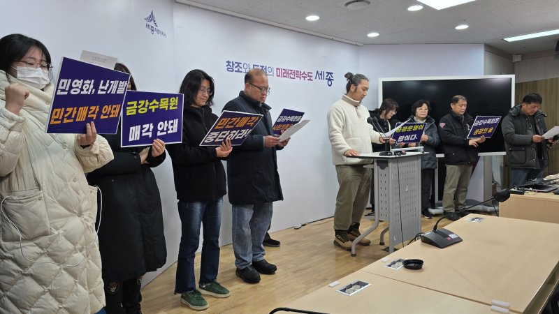 지역 40여개 단체로 구성된 금강수목원 공공성 지키기 네트워크는 이날 세종시청에서 기자회견을 열어 "충남도가 곧 매각 입찰 공고를 낼 것으로 알려졌는데, 국유화를 공식 건의한 지 불과 4개월도 지나지 않은 시점에서 민간 매각을 서둘러 추진하는 행태를 규탄한다"며 이렇게 밝혔다.