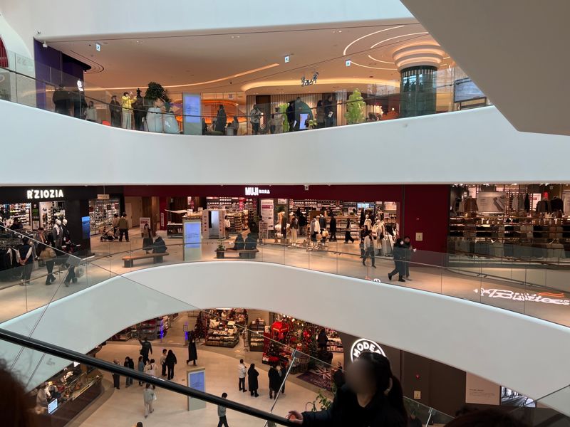 【파주(경기)=김현지 기자】 3일 오전 경기 파주 '스타필드 빌리지 운정' 프리오픈 현장. 정식 오픈은 오는 5일이지만 프리오픈 기간에도 일반 고객의 방문이 가능해 매장 내부는 가족 단위 방문객들로 북적였다. 특히, 눈에 띄는 것은 다른 매장에 비해 유독 유모차가 많다는 점이었다. 평일 낮인데도 아이를 데리고 나온 부모들의 발걸음이 이어졌고, 반려견을 유모차에 태워 함께 이동하는 고객들도 적지 않았다.