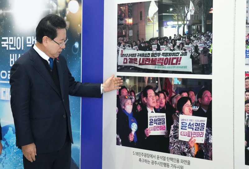 이어 "1년 전 그날 밤 TV 화면을 가득 채운 비상계엄 선포 소식은 2024년 대한민국이라고는 믿기지 않는 비현실적인 공포였다"며 "특히 전남에는 40여년 전 5·18의 악몽이 되살아나는 공포로 다가왔다"고 덧붙였다.