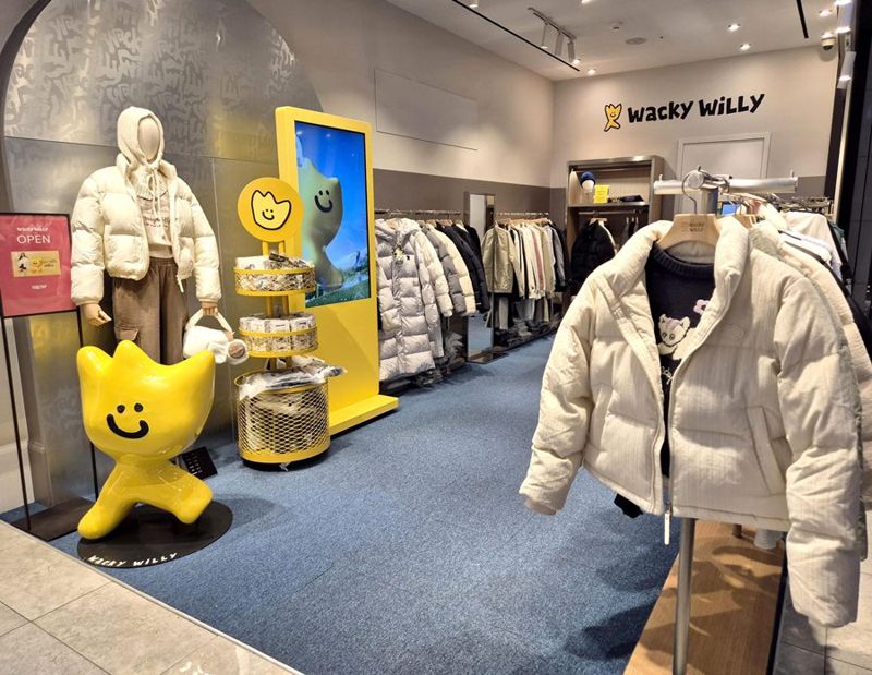 K패션 브랜드 ‘와키윌리(Wacky Willy)’ 팝업은 명동점 9층에서 진행된다. 매장 전면에는 모델 지젤의 화보와 영상을 노출하고, 내부는 화이트·베이지 톤 조닝과 블루 러그로 캐주얼·스트리트 감성을 표현했다. 티셔츠·모자·키링 등 캐릭터 기반 대표 상품으로 구성됐으며, 80달러 이상 구매 고객에게는 지젤 포토카드와 스크런처를 증정한다. 오는 31일까지는 25가을·겨울(FW) 일부 품목을 최대 40% 할인한다.