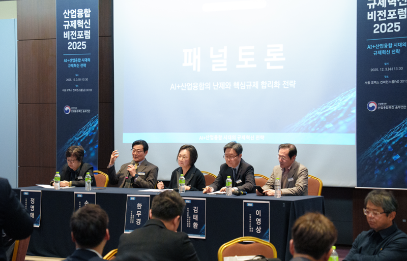 이어진 패널토론에서는 'AI+산업융합의 난제와 핵심 규제합리화 전략'을 주제로 제도 개선 방안을 논의했다. 패널들은 산업 현장 변화에 맞춘 유연한 규제 체계 구축의 시급성을 강조했다.