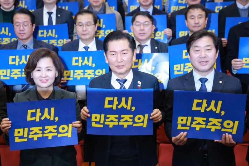 이후 참석한 특별좌담회에서도 민주당 지도부는 내란 청산을 재차 강조했다. 정 대표는 "아직도 내란에 반성하지 않는 세력과의 싸움이 아직도 많이 남아 있구나라는 생각을 다시 한 번 한다"면서 "내란은 아직 끝나지 않았다"고 목소리를 높였다.