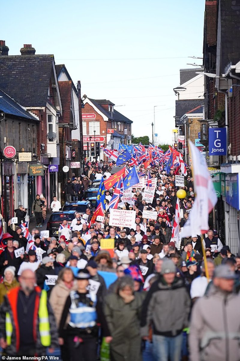2일(현지시간) 영국 데일리메일에 따르면 지난 30일 영국 남동부 크로버러에 위치한 군 훈련 캠프 앞에는 4000명 이상의 주민들이 행진 시위를 벌였다. 이 캠프는 영국 내무부가 난민 남성 600명을 수용하기 위해 임시 이민자 시설로 지정한 곳이다.