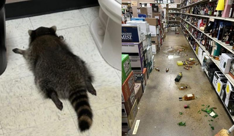 해당 판매점의 직원은 화장실에서 만취한 기절해 있는 라쿤을 발견하고 경악했다.