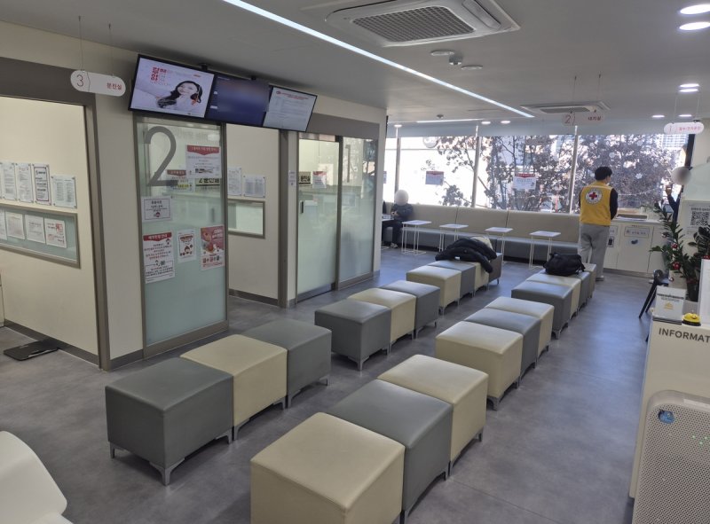 전체 문진실 3곳 중 2곳만 운영 중이었다. 헌혈 대기 인원은 1∼3명에 그쳤다.