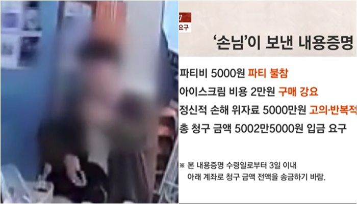 여기서 더해 B씨는 파티 당시 아이스크림을 스태프 추천으로 주문했는데, 이를 강제 구매라고 주장하며 비용과 함께 정신적 위자료 5천만 원을 3일 내 송금하라는 내용증명을 보내기도 했다.