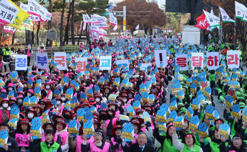 학교비정규직연대회의(연대회의)는 4일 오후 국회 앞에서 총파업대회를 연다고 밝혔다. 이들은 이날 경기 대전, 충남, 5일 경남, 경북, 대구, 부산, 울산에서 릴레이 파업을 한다.