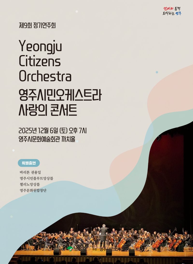 시 관계자는 "영주시민오케스트라 단원들의 헌신적인 노력으로 준비된 정기연주회가 시민에게 울림 있는 시간이 되길 기대한다"며 "앞으로도 생활 속 문화예술 참여 기회를 확대할 수 있도록 지원을 아끼지 않겠다"고 말했다.