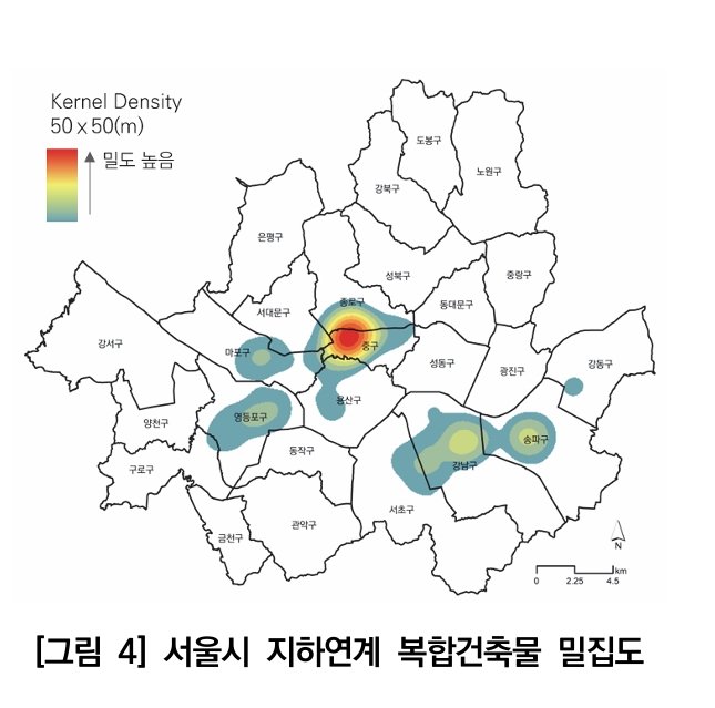 4일 서울연구원에 따르면 2024년 기준 전국 지하 연계 복합 건축물은 총 346동이고 이 가운데 211동, 즉 전체의 60%가 서울에 집중돼 있다.