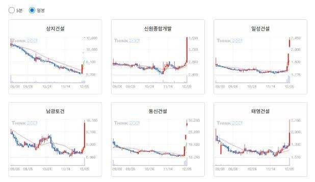 오후 이슈 [건설] : 상지건설, 일성건설, 신원종합개발, 남광토건, 동신건설