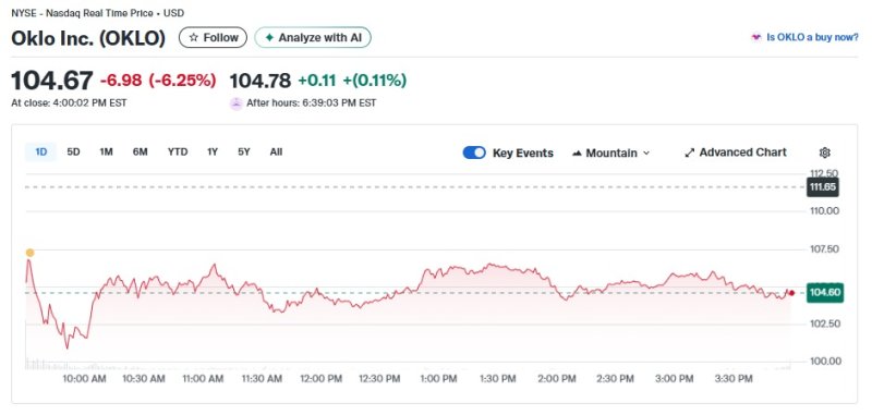 5일(현지 시각) 뉴욕증시에서 오클로는 6.25% 급락한 104.67달러를 기록했다.