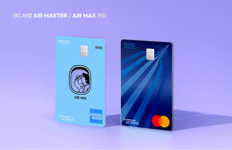 이번에 선보이는 BC 바로카드(자체발급카드) 라인업은 △에어 마스터(AIR MASTER) △에어 맥스(AIR MAX) 총 2종이다. 기본 대한항공 스카이패스 마일리지 적립에 주유∙교통∙아파트관리비와 같은 생활 밀착 영역까지 마일리지로 적립되어 실질적인 할인 혜택이 더욱 강화됐다.
