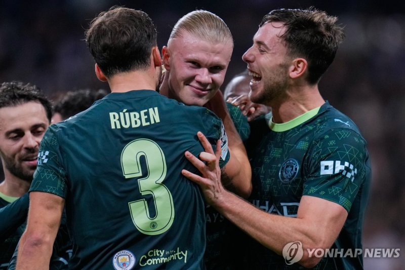 맨시티, 적진서 '알론소 경질 위기' 레알 마드리드에 2-1 역전승호드리구에 선제골 내줬으나 오라일리 동점골·홀란 페널티킥 골로 승리