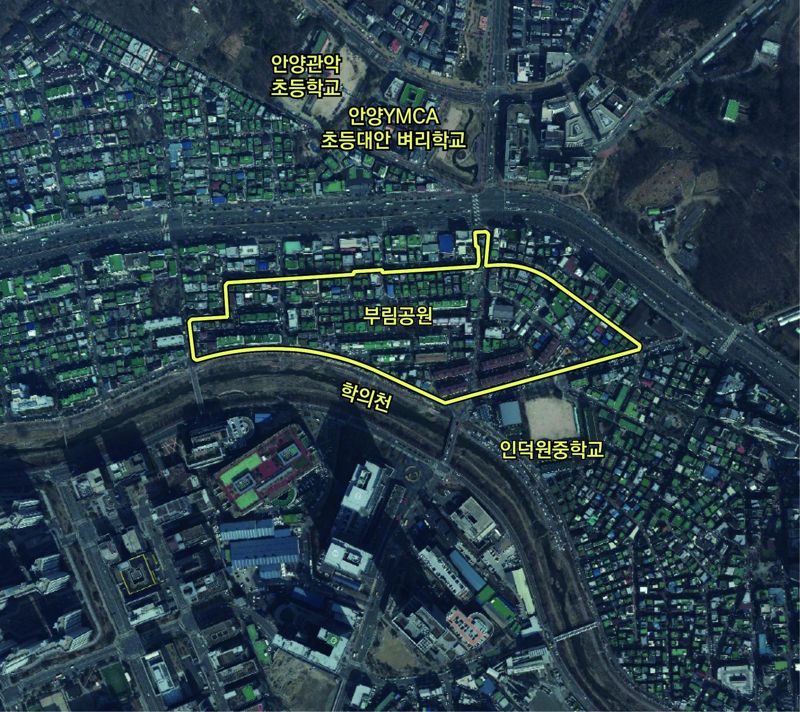 단지 규모도 크다. 동안구 관양동 1471번지 일원 부지면적은 7만5462㎡에 달한다. 재개발 후엔 약 1700가구 규모의 대단지로 탈바꿈할 예정이다. 현재 인덕원 일대 대장주 아파트로 꼽히는 인덕원푸르지오엘센트로(1774가구)와 비슷한 규모다. 인덕원역과의 거리는 인덕원푸르지오엘센트로보다 부림마을 재개발이 3배 가깝다.