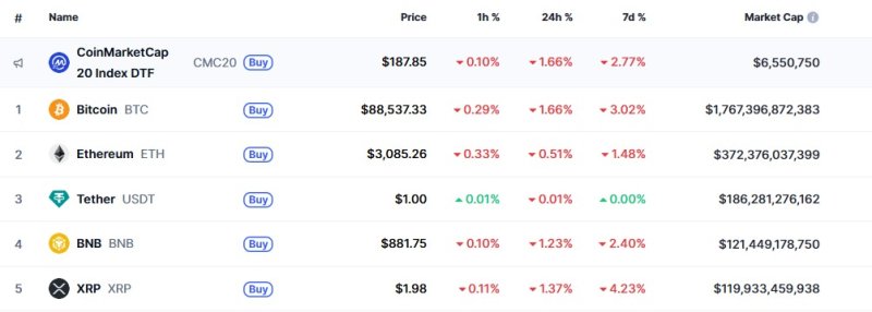15일 오전 6시 20분 현재 글로벌 코인 시황 중계사이트 코인마켓캡에서 비트코인은 24시간 전보다 1.66% 하락한 8만8537달러를 기록하고 있다. 8만9000달러 선이 붕괴한 것. 이는 지난 8일 이후 처음이다.