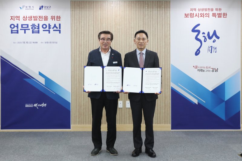 (보령=뉴스1) 김낙희 기자 = 충남 보령시는 시청 민원동 회의실에서 서울 강남구와 지역 상생발전을 위한 업무협약을 체결했다고 15일 밝혔다.