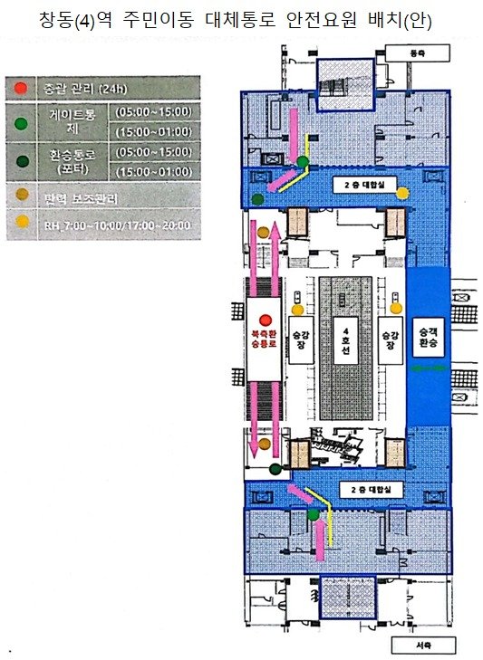 공사는 서울시의회 교통위원회와 도봉구 등 관계기관 협의를 거쳐, 4호선 창동역 북측 환승통로를 임시 대체통로로 제공하기로 결정했다.