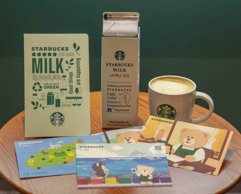 스타벅스는 지난해 10월부터 대전 지역 58개 매장에서 종이팩 회수 시범 사업을 시작해 1년간 약 46톤에 달하는 종이팩(우유팩멸 균팩)을 수거해 노트와 엽서 등의 업사이클링 굿즈로 선보이고 있다. 이는 약 900그루의 나무를 심는 것과 같은 환경적 효과를 가져올 것으로 기대되는 분량이다.