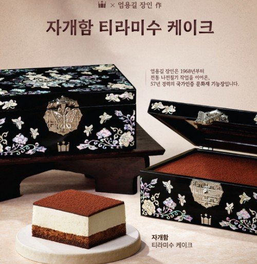 케이크를 즐긴 후 자개함은 액세서리·명함 등을 보관하는 소품함으로 사용할 수 있다. 자개함을 만든 엄용길 기능장은 1968년부터 나전칠기를 시작한 57년 경력의 명장이다. 명장의 수공예로 탄생한 자개함은 복, 기쁨 등 전통문화에서 좋은 징조를 상징하는 나비를 활용해 의미를 더했다.