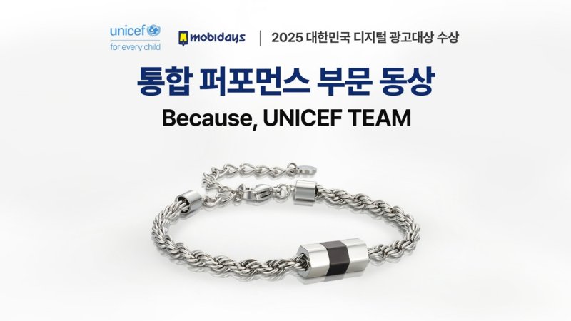[서울=뉴시스] 김경택 기자 = 종합 미디어 콘텐츠 그룹 모비데이즈는 유니세프 한국위원회와 함께 진행한 'Because, UNICEF TEAM' 캠페인으로 '2025 대한민국 디지털 광고 대상(KODAF 2025)'에서 '통합 퍼포먼스 부문' 동상을 수상했다고 15일 밝혔다.