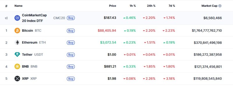 15일 오전 10시 현재 글로벌 코인 시황 중계사이트 코인마켓캡에서 비트코인은 24시간 전보다 2.20% 하락한 8만 8405달러를 기록하고 있다.