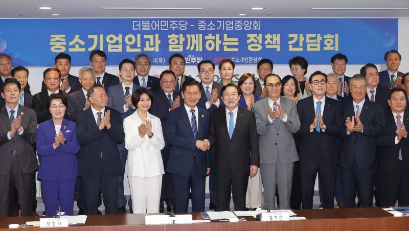 김기문 중기중앙회장은 이날 "지난 정기국회에서 민주당이 노력한 결과 상생협력법 개정안이 통과돼 납품대금 연동제 적용 대상 확대, 상생금융지수 도입 등 성과를 거뒀다"며 "중소기업 규제가 확실히 개선되고 지역경제가 살아날 수 있도록 민주당 차원에서 입법 지원에 나서야 한다"고 말했다.