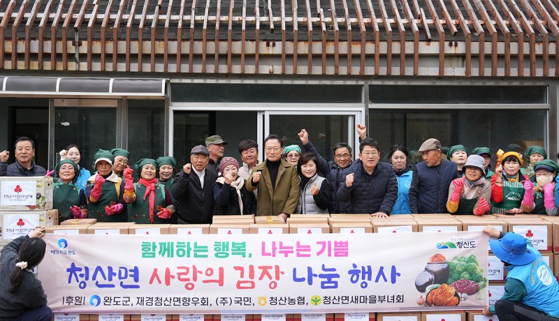 15일 완도군에 따르면 청산면과 새마을부녀회 재광향우회 회원들은 최근 청산도에서 연말연시 홀로 사는 어르신들이 따뜻한 겨울을 날 수 있도록 '사랑의 김장김치 담가주기' 행사를 가졌다.