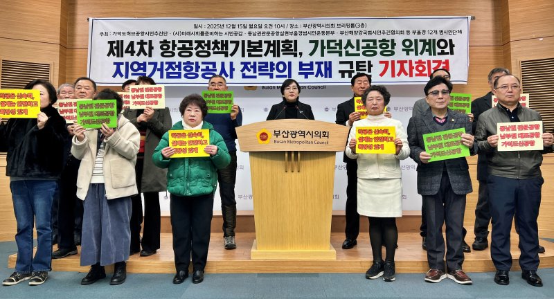또 지역거점항공사 문제도 함께 제기했다. 단체는 "에어부산 통합으로 부산은 지역거점항공사를 잃었는데 정부는 이에 대한 대책을 내놓지 않고 있다"며 "거점항공사 없는 관문공항은 존재할 수 없다"고 주장했다.