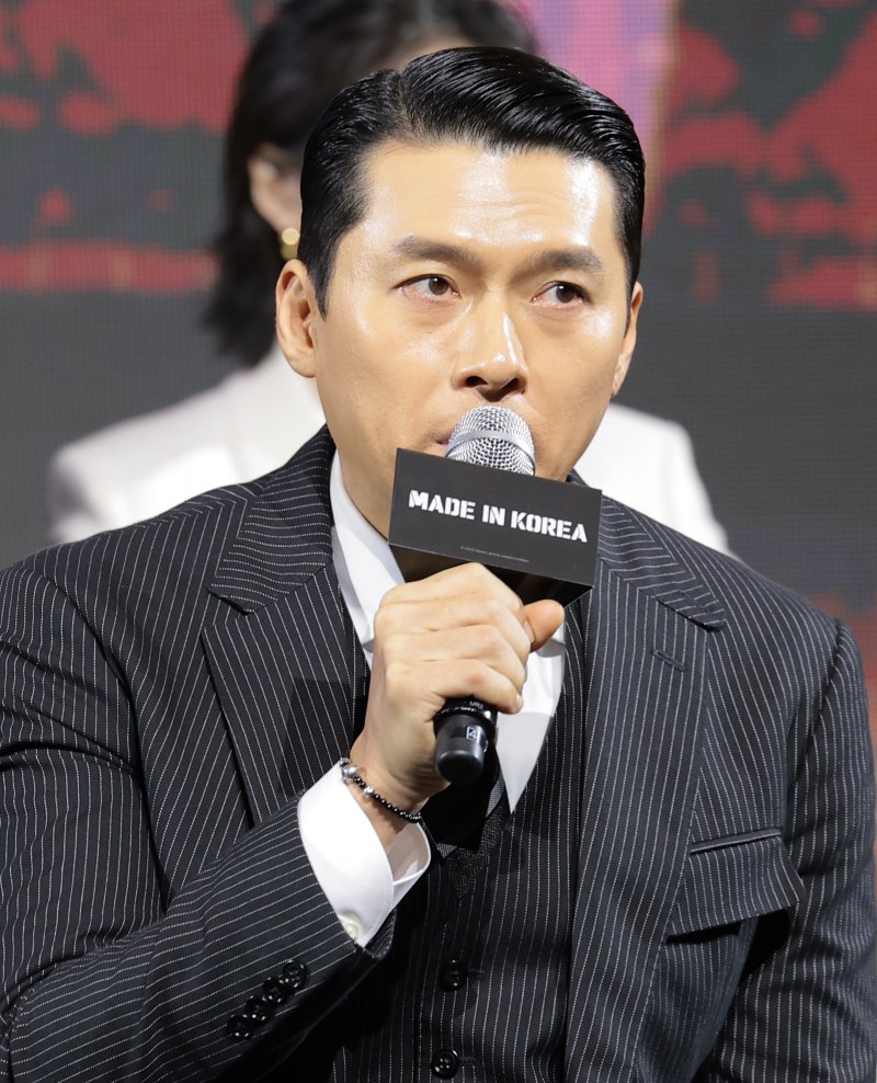 현빈은 15일 오전 서울 강남구 그랜드 인터컨티넨탈 서울 파르나스에서 진행된 디즈니+(플러스) '메이드 인 코리아'의 제작발표회에서 작품 속에서 평소에 비해 몸이 커졌다는 말에 "정확히 보셨다"고 답했다.
