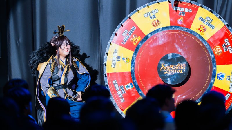 김정민 넷마블넥서스 대표는 룰렛맨으로 등장했다. 프로그램 사이마다 룰렛을 돌려 빛나는 스킬 강화성 9개, 영웅 소환 이용권 60개, 펫 소환 이용권 30개, 혼돈의 정수 3개, 망각의 정수 4개, 열쇠 상자 15개 등 보상을 제공했다.