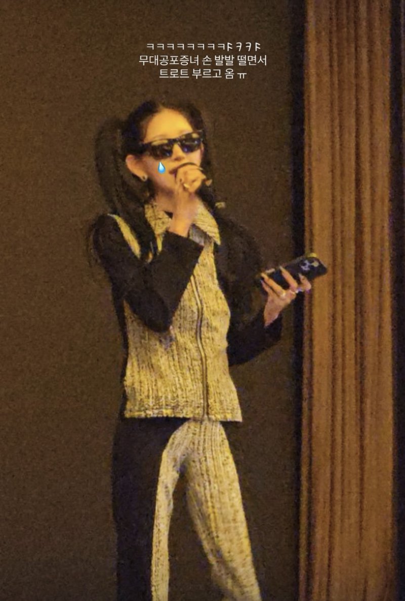그는 지난 14일 소셜미디어에 "무대공포증녀 손 발발 떨면서 트로트 부르고 옴"이란 글과 함께 사진 여러 장을 올렸다.