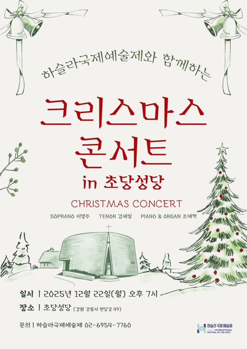 하슬라국제예술제 사무국은 오는 22일 오후 7시, 강릉 초당성당에서 '하슬라국제예술제와 함께하는 크리스마스 콘서트 in 초당성당'을 개최한다고 15일 밝혔다.