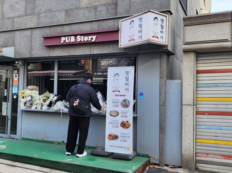 고려대학교 새내기 시절부터 '영철버거' 10년차 단골인 정대영 씨(28)는 문이 닫힌 가게 앞에 국화 꽃을 바치며 이렇게 말했다.