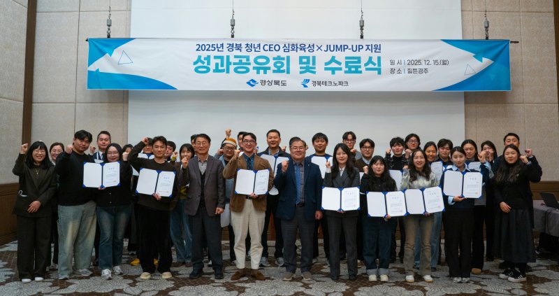 [안동=뉴시스] 류상현 기자 = 경북도가 15일 경주 힐튼호텔에서 '2025년 경북 청년 최고경영자(CEO)심화육성 지원사업'과 '2025년 경북CEO 점프업 지원사업' 성과보고회 및 수료식을 열었다.