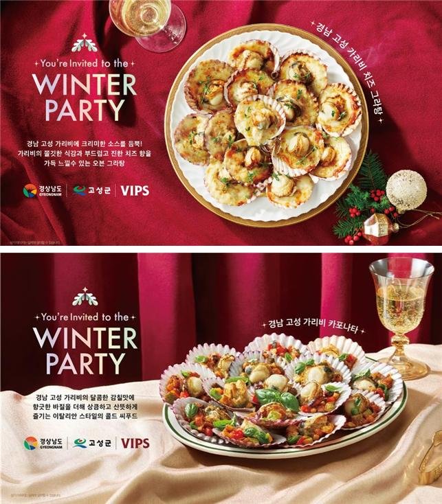 지난 9월30일 경남도·도의회·고성군·CJ푸드빌 등 5개 기관·기업이 체결한 가리비 소비 확대 상생협력 후속 조치로, CJ푸드빌과 협업해 10월 개발한 고성 가리비 활용 신제품 2종은 지난달 18일부터 전국 35개 빕스 매장에서 선보이고 있다.