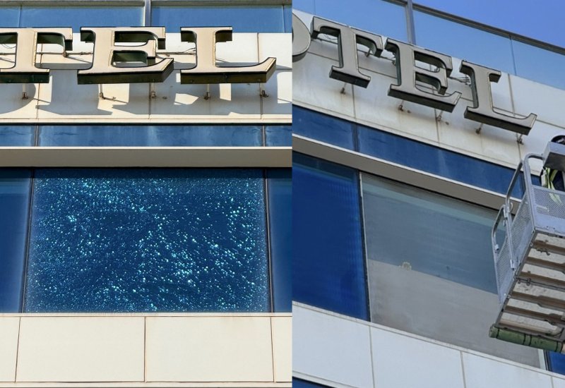 경찰은 '유리창이 파손될 우려가 있다'는 112 신고를 받고 출동해 해당 유리창 교체 작업이 완료될 때까지 호텔 앞 인도와 도로(왕복 2차로)를 통제했다.