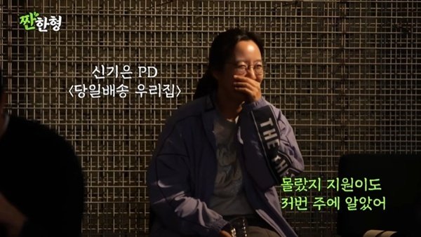 MC 신동엽이 '당일배송 우리집' PD가 가수 민경훈의 아내인 신기은 PD라고 언급해 시선을 모았다.