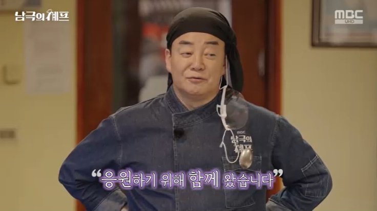 식사를 시작하기 전 백종원이 등장했다. 그가 "이렇게 여러분처럼 남극에서 연구하는 대원들을 응원하고 위로하려고 왔다"라고 입을 열었다. 아울러 "지금 여러분 앞에 준비한 음식은 한국인이 많이 먹는 음식 중 하나로, 특히 젊은 학생들이 공부할 때나 바쁜 직장인들이 간편하게 끼니를 해결할 때 먹는 김밥"이라고 소개했다.