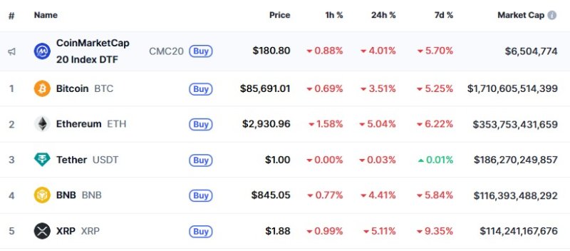 16일 오전 3시 30분 현재 글로벌 코인 시황 중계사이트 코인마켓캡에서 비트코인은 24시간 전보다 3.51% 하락한 8만5691달러를 기록하고 있다. 비트코인 8만6000달러가 붕괴한 것. 이는 지난 2일 이후 처음이다.