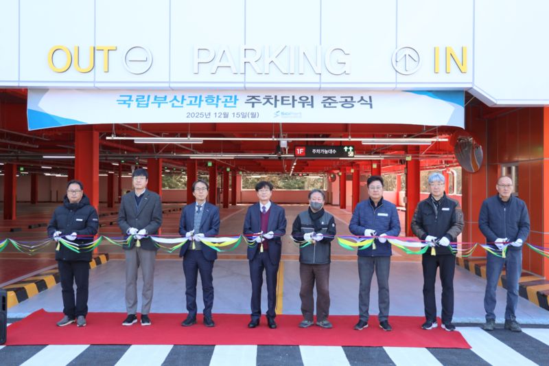 부산과학관은 주차타워 신축을 기념해 지난 15일 준공식을 개최했다. 이 자리에서 건설사업관리자 및 시공사 상지엔지니어링건축사사무소·제이와이산업개발에 대한 감사패를 수여하고 테이프 커팅식을 진행했다.