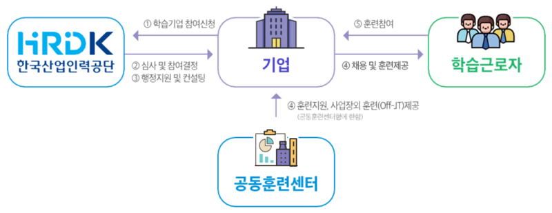 일학습병행은 기업이 청년 등을 ‘학습근로자’로 채용해 일터에서 장기간(6개월~4년) 도제식 교육훈련(OJT)과 사업장 외 교육훈련(Off-JT)을 제공하고, 훈련을 마친 뒤 국가가 역량을 평가해 자격을 부여하는 제도다.
