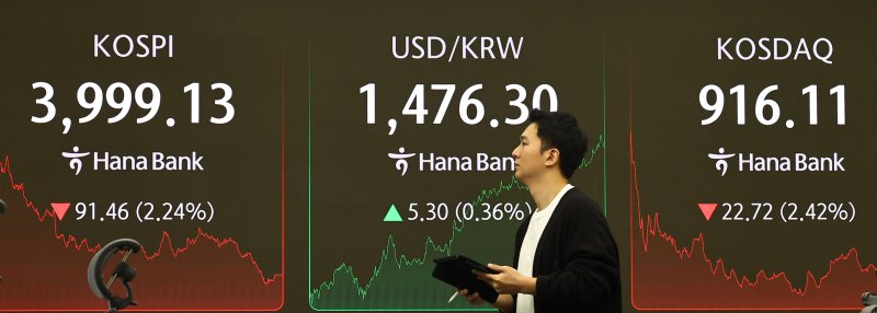 17일 한국거래소에 따르면 전날 코스피는 2.24% 급락한 3999.13에 장을 마감했다. 전날(1.84%)에 이어 이틀간 누적 하락폭은 4%를 넘겼다.