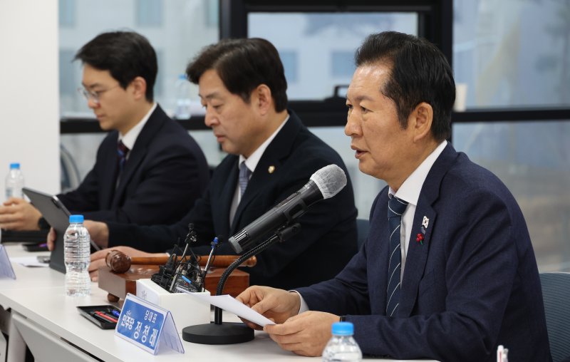 한편 정 대표는 전날 의원총회를 통해 마련한 이른바 '내란전담재판부법(내란 및 외환에 관한 특별전담재판에 관한 특별법)' 잠정 수정안에 관해 "세세한 미세 조정이 남았지만 당론으로 추진하겠다"라고 밝혔다.