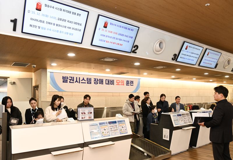 훈련에는 대한항공, 에어로케이항공, 파라타항공 등 10개 국적항공사가 참가했으며, '간이 여객처리 시스템'을 통한 여객 정보 자동 업로드, 좌석 배치, 항공권 발권 등 탑승수속 처리 절차를 점검했다.